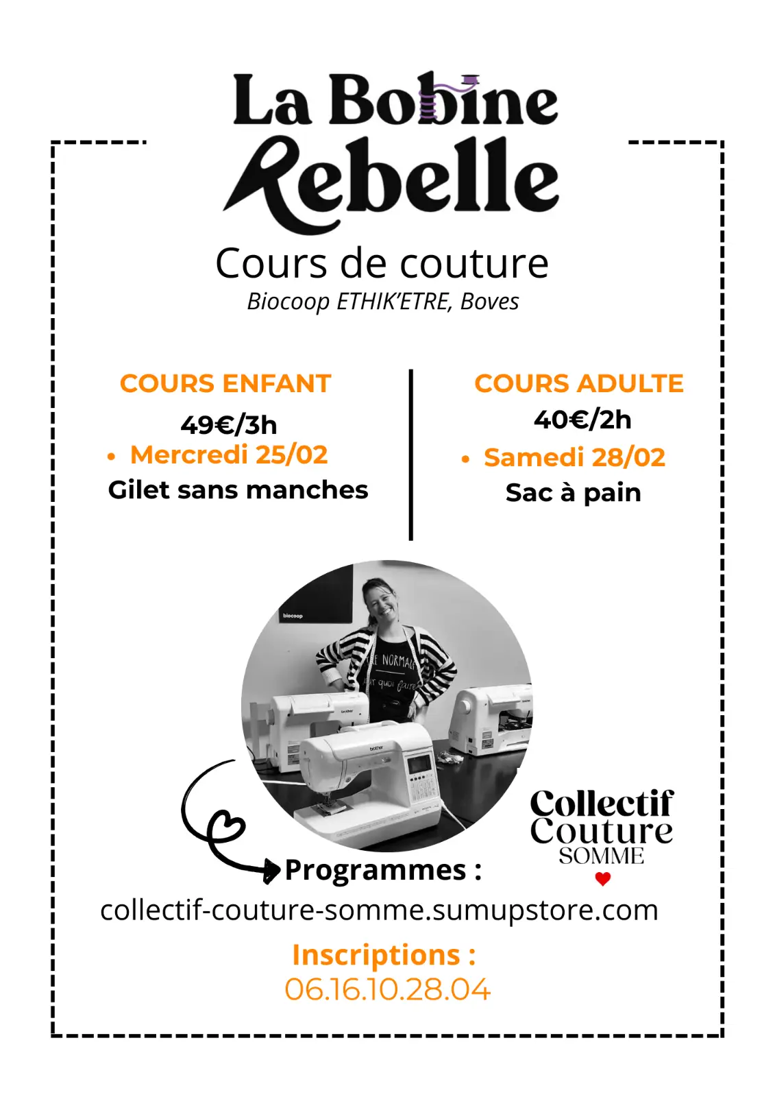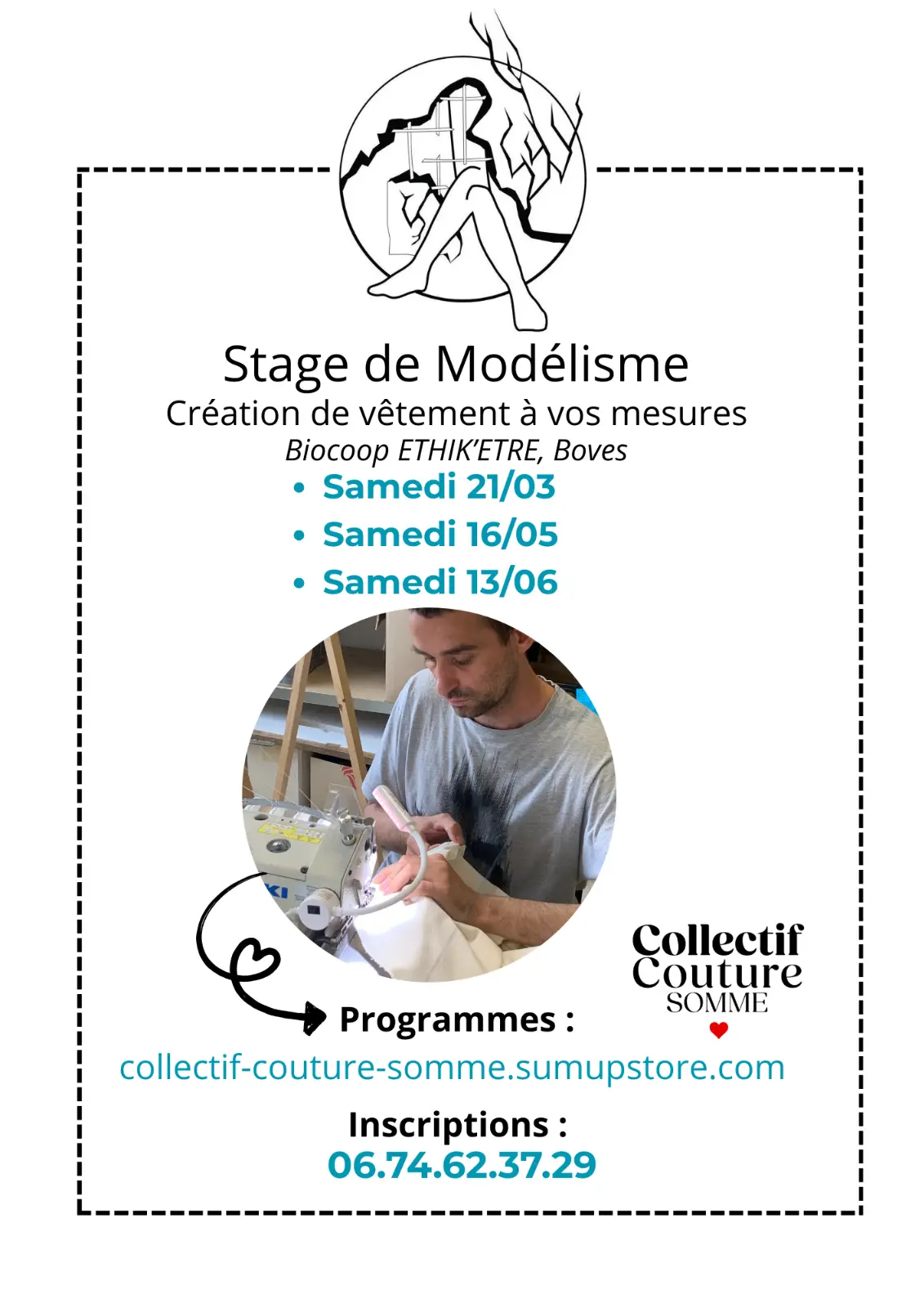 Laura et Thomas de l'atelier Collectif Couture Somme viennent avec leurs machines, tissus, matériel et leur petite valise à connaissances. Pendant un atelier de 2 ou 3h, apprenez et repartez avec vos réalisations.